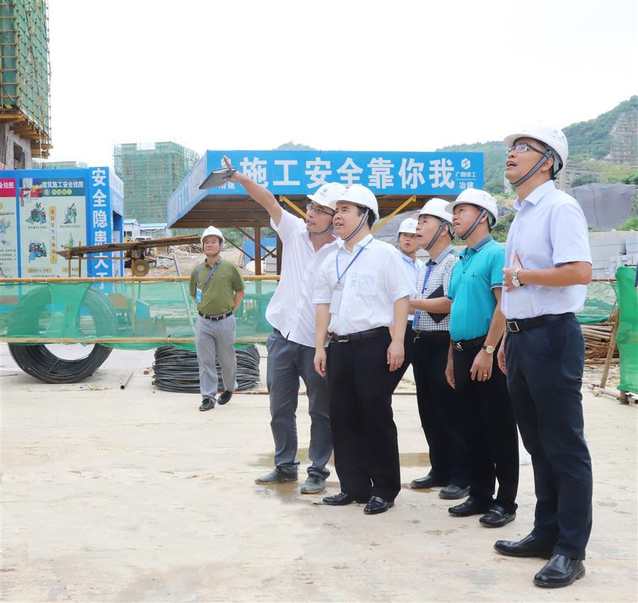 7月6日,廣西建工集團有限責任公司副總經(jīng)理陳禮松率檢查組到廣西建工集團冶金建設有限公司承建的麗景嘉苑1#~9#樓及地下室、社區(qū)衛(wèi)生服務中心項目開展2018年上半年安全生產(chǎn)大檢查,冶建公司黨委書記、董事長歐志永陪同檢查。